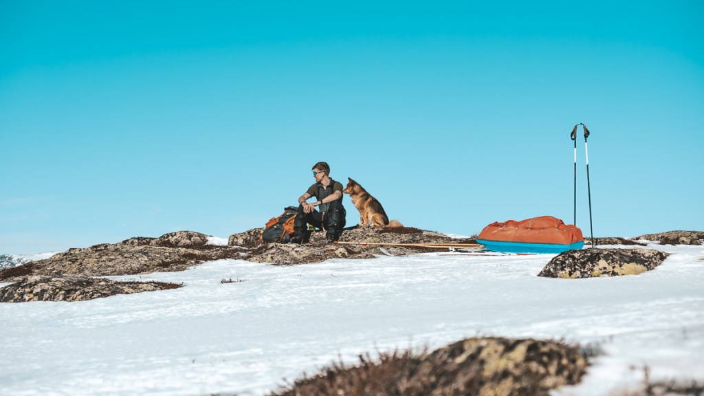 Även om solen värmt gott under dagen blev jag snabbt påmind om att vi fortfarande bara befinner oss i mars så när jag kröp ner i sovsäcken hade det börjat bli ganska kallt. Jag skulle tro att det var runt -15 på natten men i tältet hade jag och Dimma det bra. Till henne har jag ett renskinn hon får sova på och jag som envisas med att inte ha en ordentlig vintersäck, och heller inte följa mitt egna standardråd att använda dubbla sovsäckar, frös faktiskt lite när jag låg i min 3-säsongssäck nedstoppad i en fjellduk. Men vet du vad, när jag på morgonen öppnade tältduken och blickade ut över fjället så spelade inte nattens kyla någon roll för jag vaknade till en strålande vacker morgon på fjället!