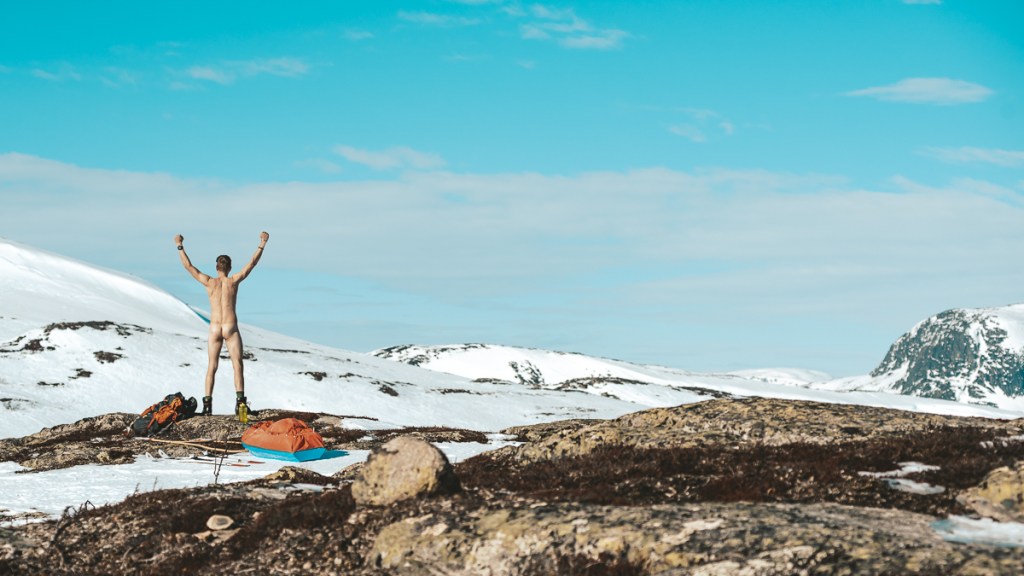 I strålande solsken kunde jag skida i t-shirt hela vägen upp på kalfjället, ta ett par rödingar i tjärnen och sätta upp tältet när solen började sin bana in bakom nästa fjäll. Det var helt makalöst vackert och där och då saknade jag någon att dela ögonblicket med, för det är helt enkelt så att vyerna över fjällen är svåra att förklara och ännu svårare att förmedla i bild. Ett vintervitt fjäll som är både kargt och levande i samma ögonblick och där solen sakta skiner sina sista strålar för dagen över fjälltopparna. Ja, det måste upplevas.