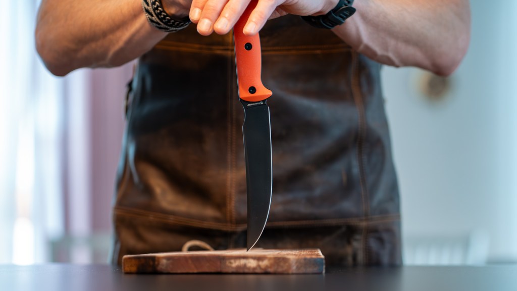 Kniven kommer i en snygg förpackning och känns som en premiumkniv när jag först plockar fram den. Den har god skärpa direkt från lådan och utformningen känns bra, om än något annorlunda. För dig som är bekant med de olika styckknivarna känns den som en blandning av en urbeningskniv och en styckkniv men den ligger bra i handen och har ett rejält uttag för tummen precis innan knivsryggen börjar vilket ger ett stadigt grepp. Bladet bör räknas som styvt och flexar inte likt vissa urbeningsknivar gör men med tanke på den spetsiga utformningen bör det fungera bra även när det handlar om att följa benen längs rygg eller bäcken vid styckning.